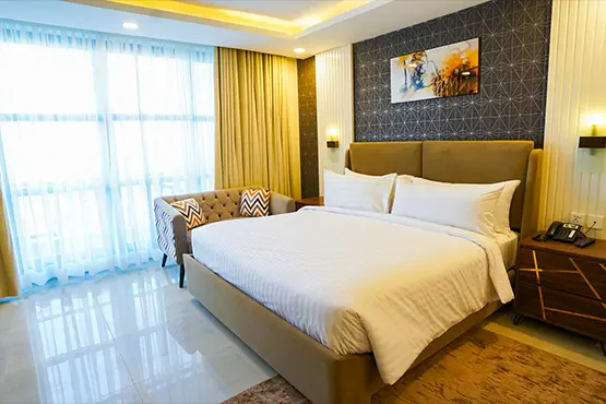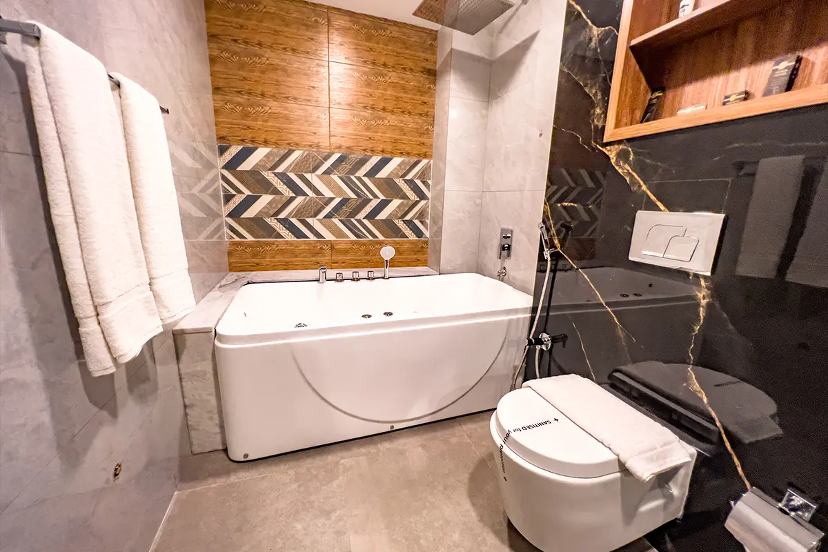 Enjoy round-the-clock room service, high-speed internet, and the cozy embrace of central heating. Entertainment is elevated with a grand 55-inch media TV.