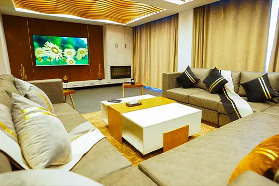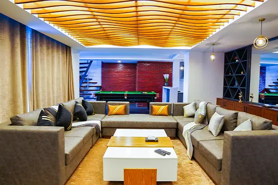 Staying in a luxurious Fiora Sky Suite spacious enough for a family gathering is an ultimate joy. Fiora Sky Suite fulfils the demand for high-end living without compromising affordability and comfort. That is why the Fiora Sky Suite rent is economical among the best hotels in Murree. The hotel’s Fiora Sky Suite features a modern design with a wooden touch, creating a sophisticated, elegant atmosphere. Moreover, our Fiora Sky Suite booking includes an Integrated smart home system..