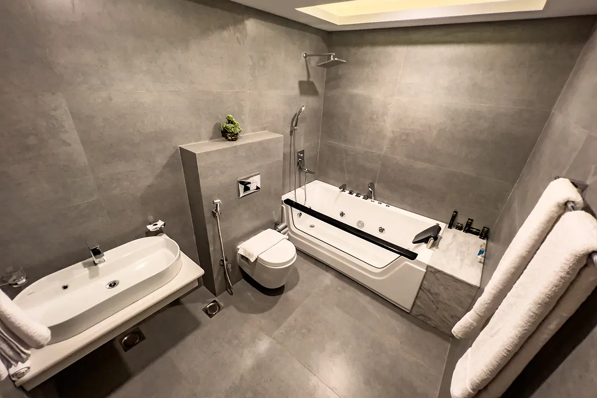 The bathroom is designed with modern toiletries and amenities. Our luxury hotel, Murree, has a bathroom with a hot shower and a jacuzzi, making it fully equipped. Plush bathrobes and an extra pair of slippers keep your hygiene. There are also basic and self-care products and a hair dryer available, allowing you to relax after a tiring day of exploring.