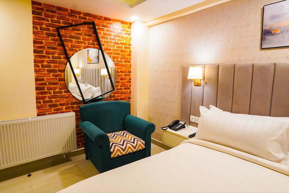 Our premium queen room is an ideal choice for staying and celebrating anniversaries or birthdays in style. Its interior is warm and in subtle colors. This updated version of the standard queen room at Fiora Hotel Murree is designed for two peoples. Fiora offers murree low-cost hotel rooms without compromising on hygiene and comfort.