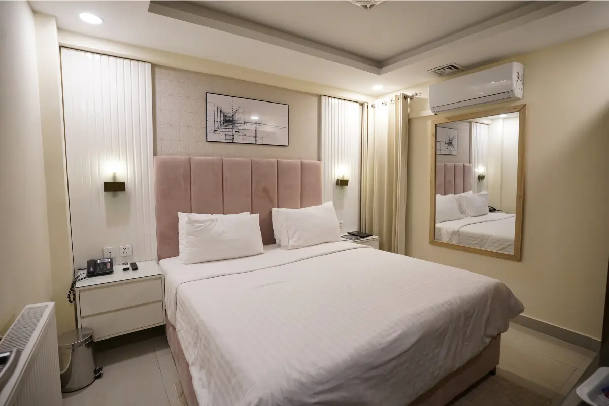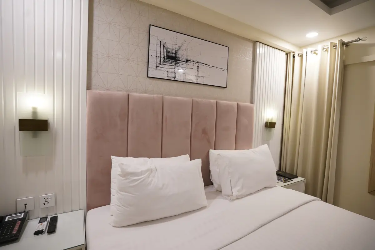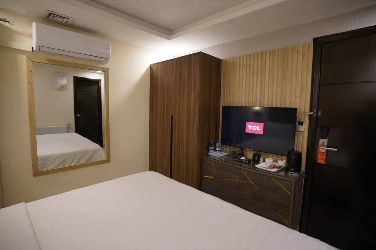 Our standard rooms for rent in Murree are equipped with a king-size bed, providing a cozy night's sleep. Its hybrid mattress is enough for two people or adults to stay comfortably. The standard room has no space for an extra mattres.